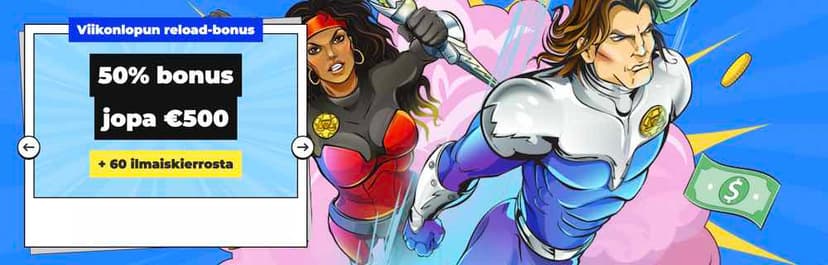 On weekends, the fun only gets better, as from Friday to Sunday, you can redeem a special bonus weekly. This benefit is paid at 50% and again nicely up to €500. Additionally, there are 50 extra free spins to sweeten the deal. Other conditions are the same as in previous offers.